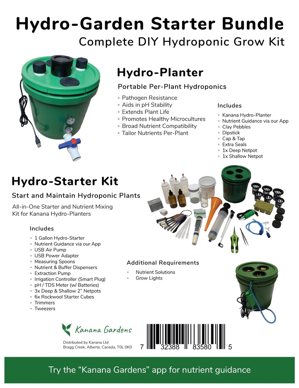 Dive into the world of hydroponics with everything you need to start and succeed. Our Hydro-Garden Starter Bundle combines the innovation of our Hydro-Planter with the essentials of the Hydro-Starter Kit, setting you up for a seamless growing experience from seed to harvest.Bundle Includes: